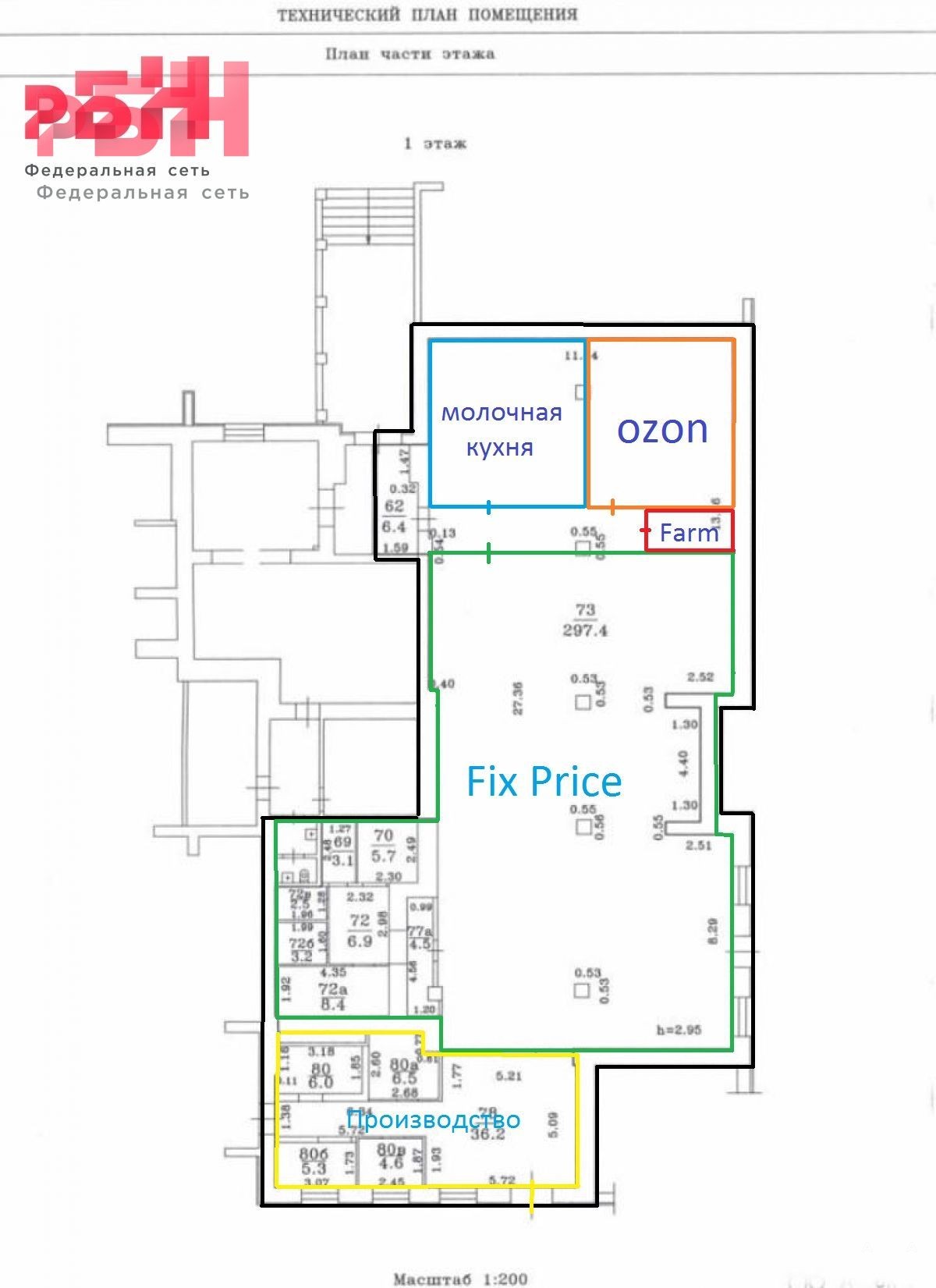 -Помещение арендуют пять арендаторов, Федеральная сеть магазинов "Фикс Прайс" , пвз "Озон", Молочная кухня, Кондитерское производство, сетевик "Фармаси";