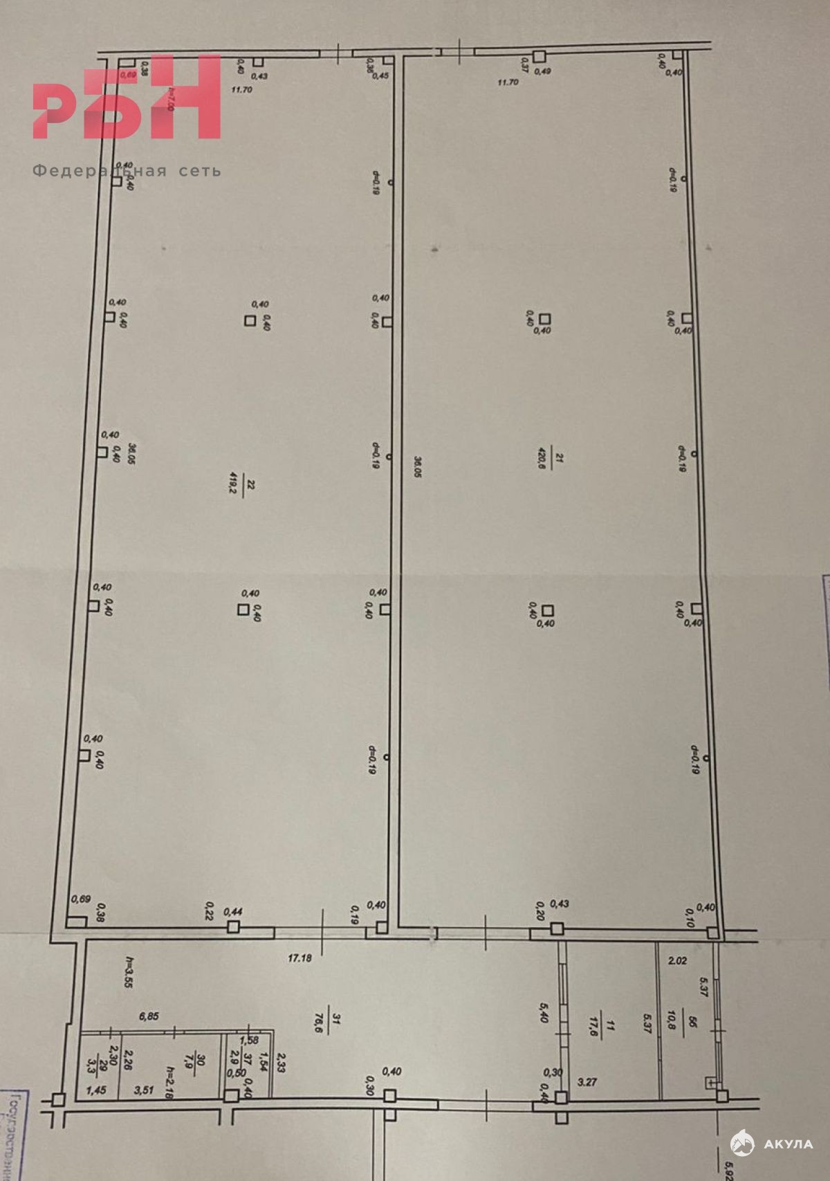Производственно-Складские блоки (2 шт.): Два помещения по 420 м² каждое, с рабочей высотой потолков 7 метров, что идеально подходит для размещения крупногабаритного оборудования или многоярусного хранения.