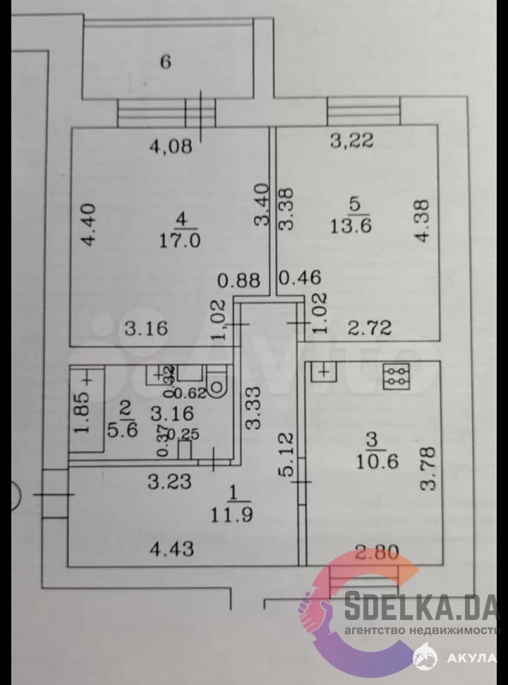 - Площадь кухни